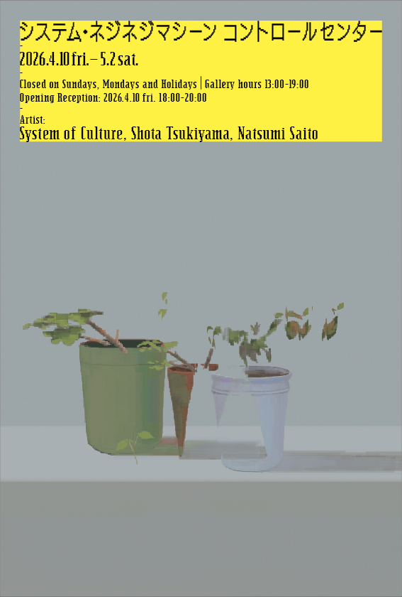 LAG is pleased to present System Nejineji Machine: Control Center, a group exhibition by System of Culture, Shota Tsukiyama, and Natsumi Saito, on view from April 10 to May 2, 2026.